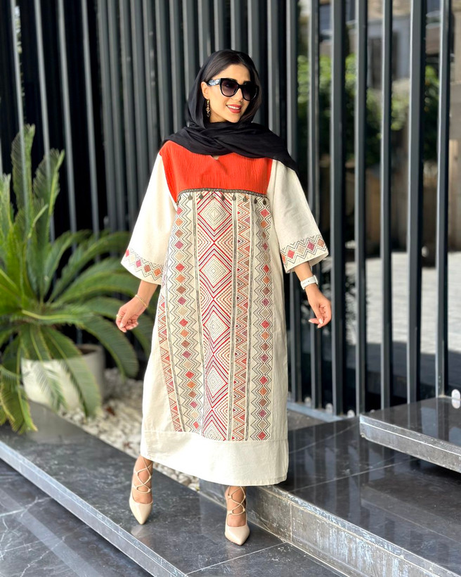 مانتو بلند لینن سوزندوزی کد ۰۱۰۵